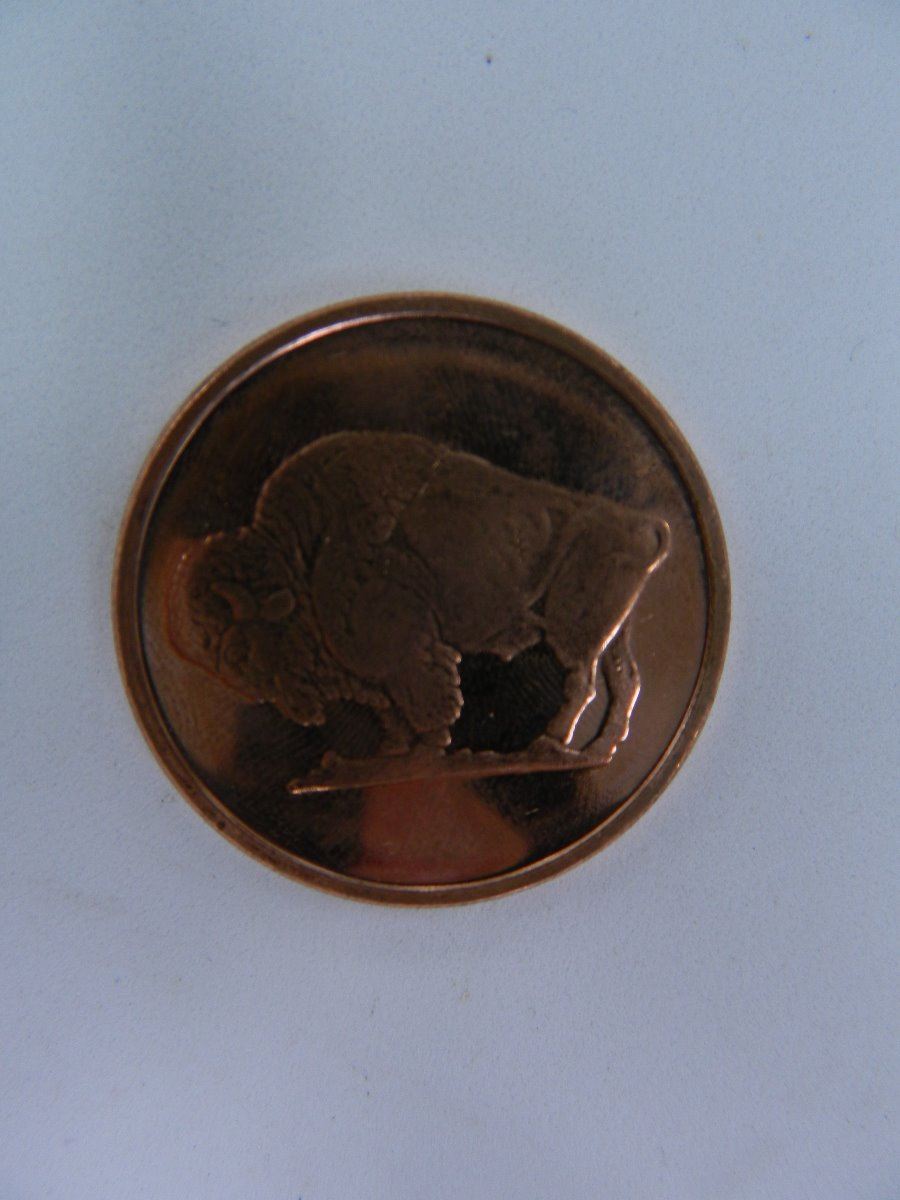 One Ounce .999 Fine Copper Bullion Round with Buffalo