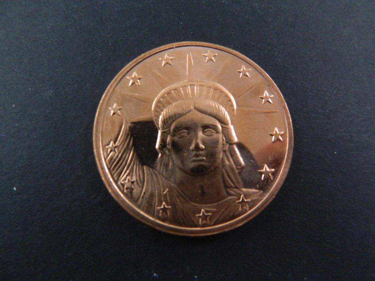 One Ounce .999 Fine Copper Bullion Round with Statue of Liberty
