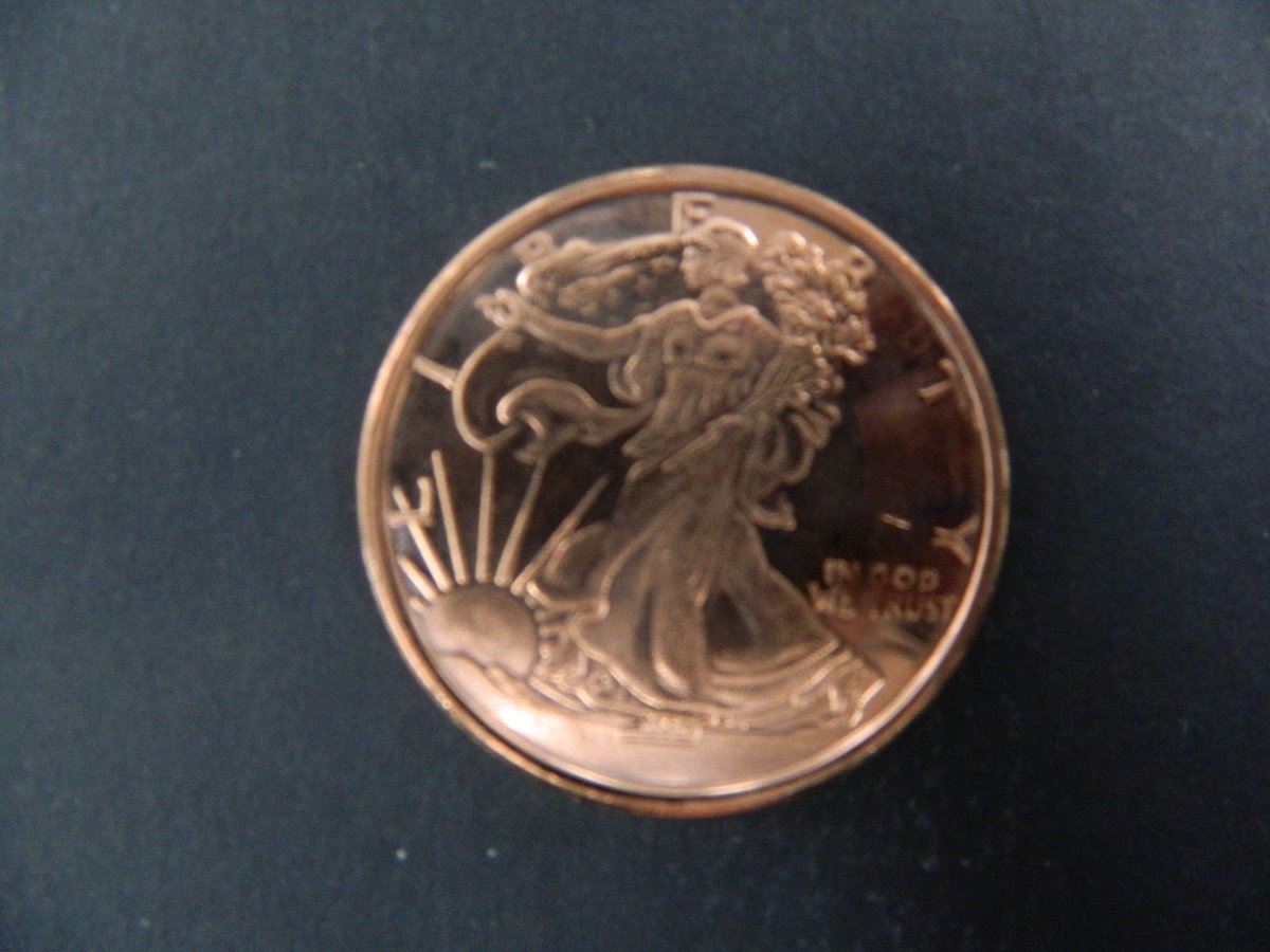 One Ounce .999 Fine Copper Bullion Round with Walking Liberty