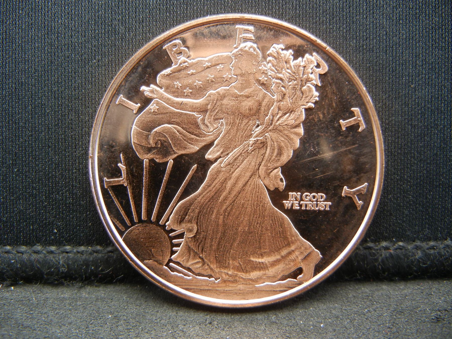 One Ounce .999 Fine Copper Round Walking Liberty Design