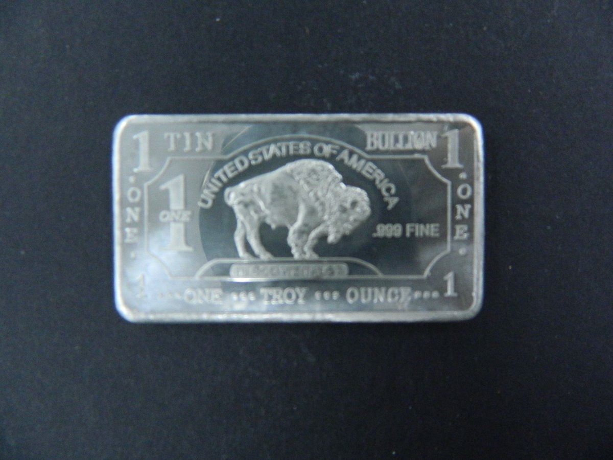 One Ounce .999 Fine Tin Bullion Bar