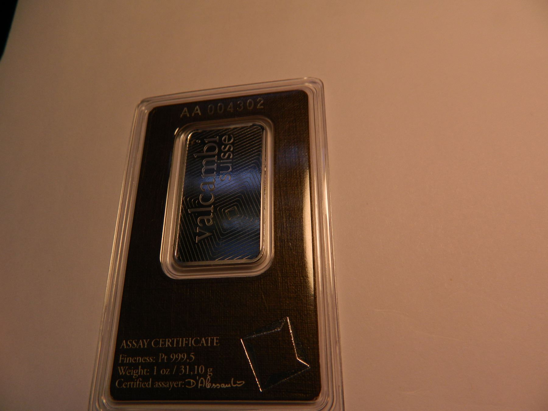 One Ounce Fine Platinum Bar, Valcambi (in Assay)