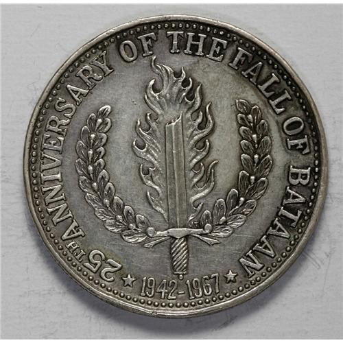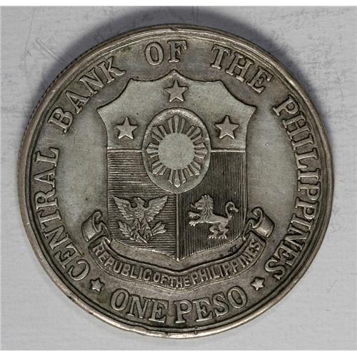 <B>One Peso 1967, Fall of Bataan commemorative (1942-1967).</B></I> Not in Krause, rare. XF-AU with some edge marks, medium gray toning.<BR><I>From the Monedas Oro Collection</B></I><BR><BR><b>Shipping:</b> Coin/Currency (<a target="_blank" href="http://www.heritageauctions.com/common/shipping.php">view shipping information</a>)
