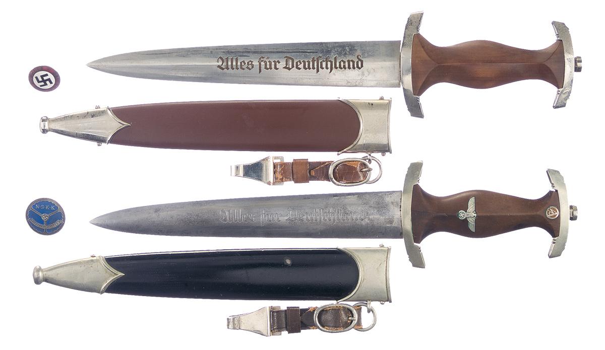 One SA Dagger and a National Socialist Motor Corps Dagger (NSKK), Both with Sheaths