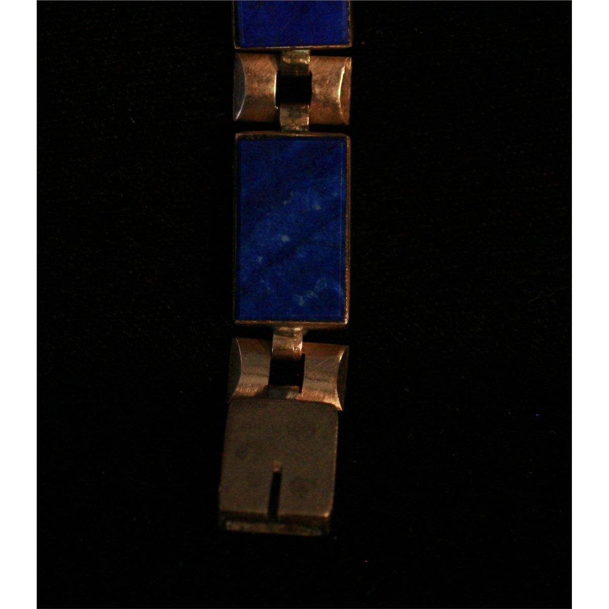 One Silver Rectangle Link Bracelet, With the links set with rectangle lapis lazuli, Total weight 28.6 grams, 7 inches long, -227051-