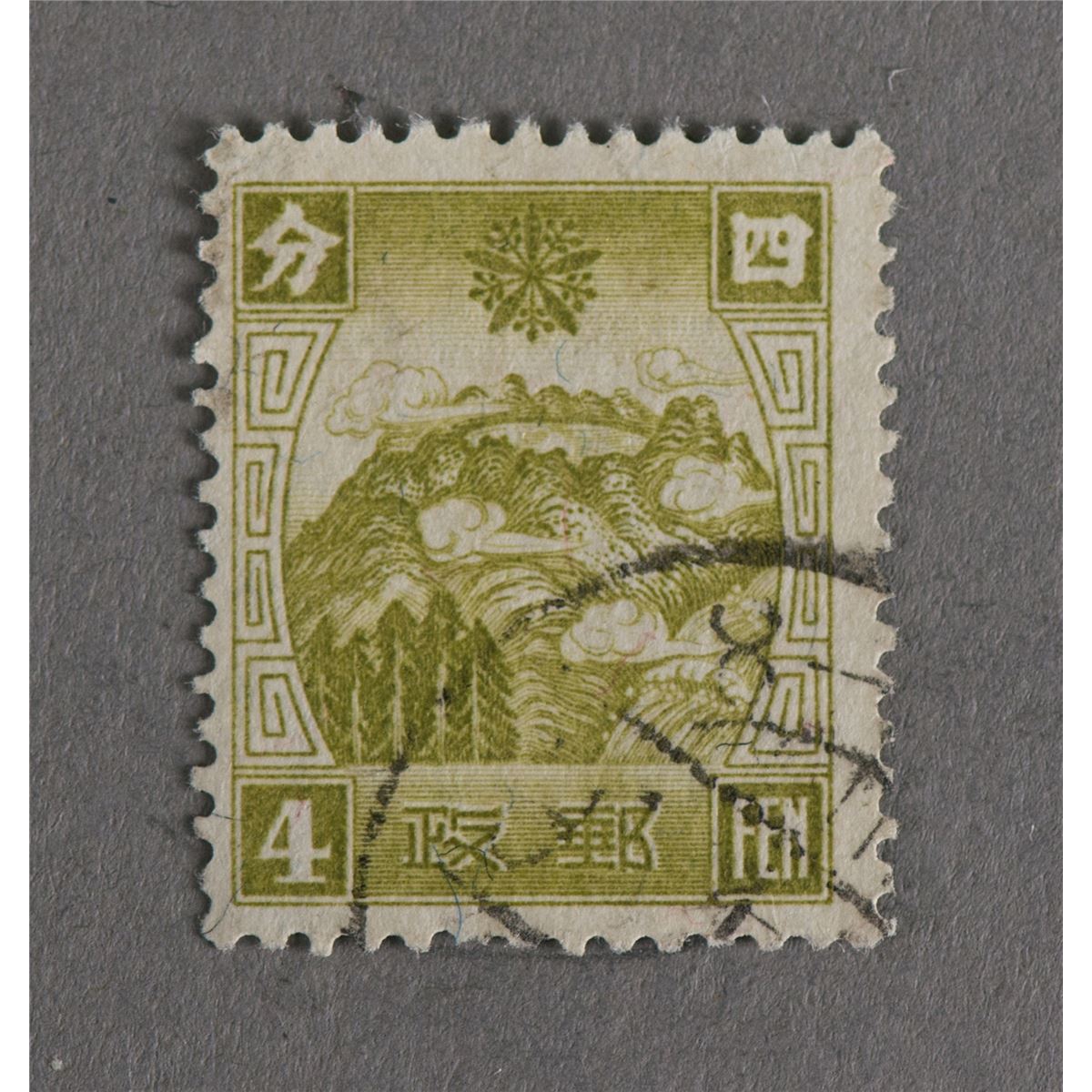 One "4 cents" Chinese Stamp, Man Mail.1 1st Print China Mail Issue, with postmark, 1935.1.1; 18.5 mm x 22 mm; Provenance: private Canadian collector