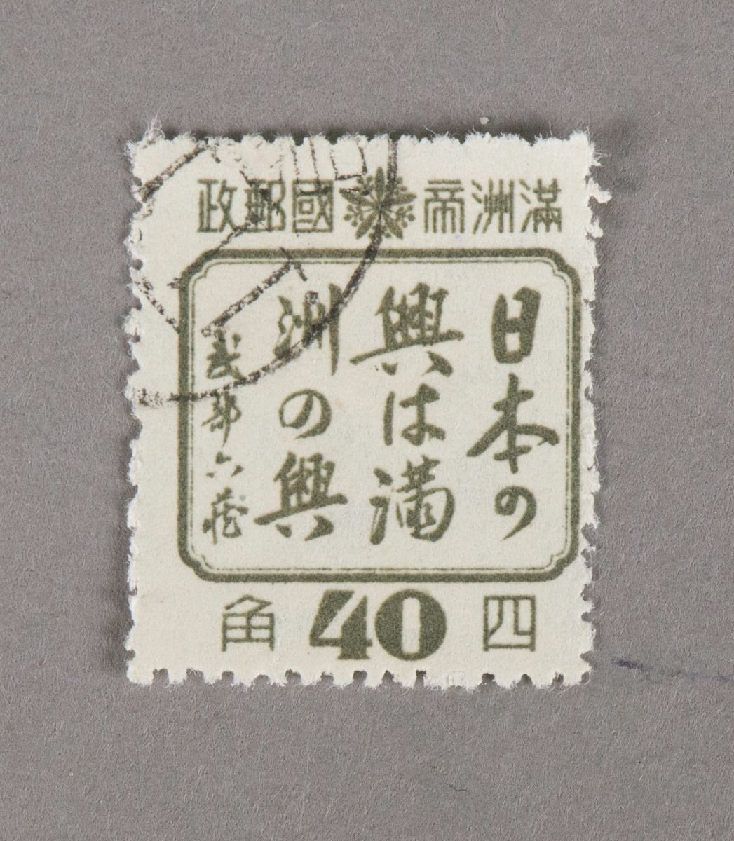 One "40 Cents" Chinese stamp, Man S.3 Invigoration Propaganda Isuue (1944.10.2); 18.5 mm x 22.5 mm