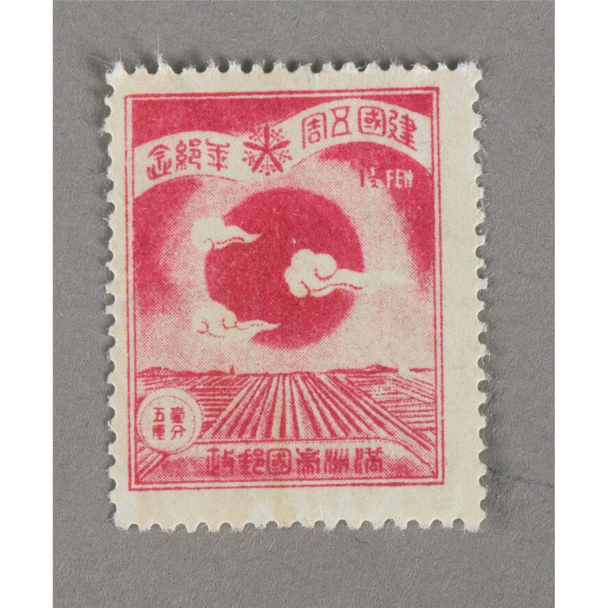 One "1.5 Cents" Chinese stamp, Man C.5 5th Anniv. of th Puppet Manchukuo Commemorative Issue (1937.3.1); 21.5 mm × 27 mm