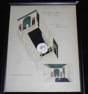 One Touch of Venus (1948) - Original hand drawn color production design for Act 1, Scene 1, set in a modern art gallery. Created for the film version of the play which starred Frank Sinatra, Robert Walker, Ava Gardner and Eve Arden. Drawn by R. Bachman and beautifully framed. Artwork: 21" x 28" and Frame: 24" x 30". This item is oversized and will require additional shipping costs. Please email for shipping rates prior to bidding.