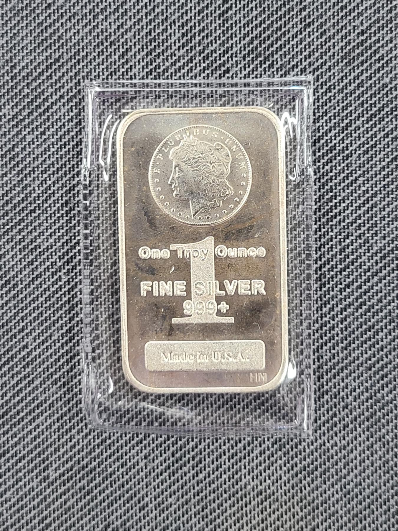 One Troy Ounce .999 Fine Silver Bar Featuring Morgan Dollar Design