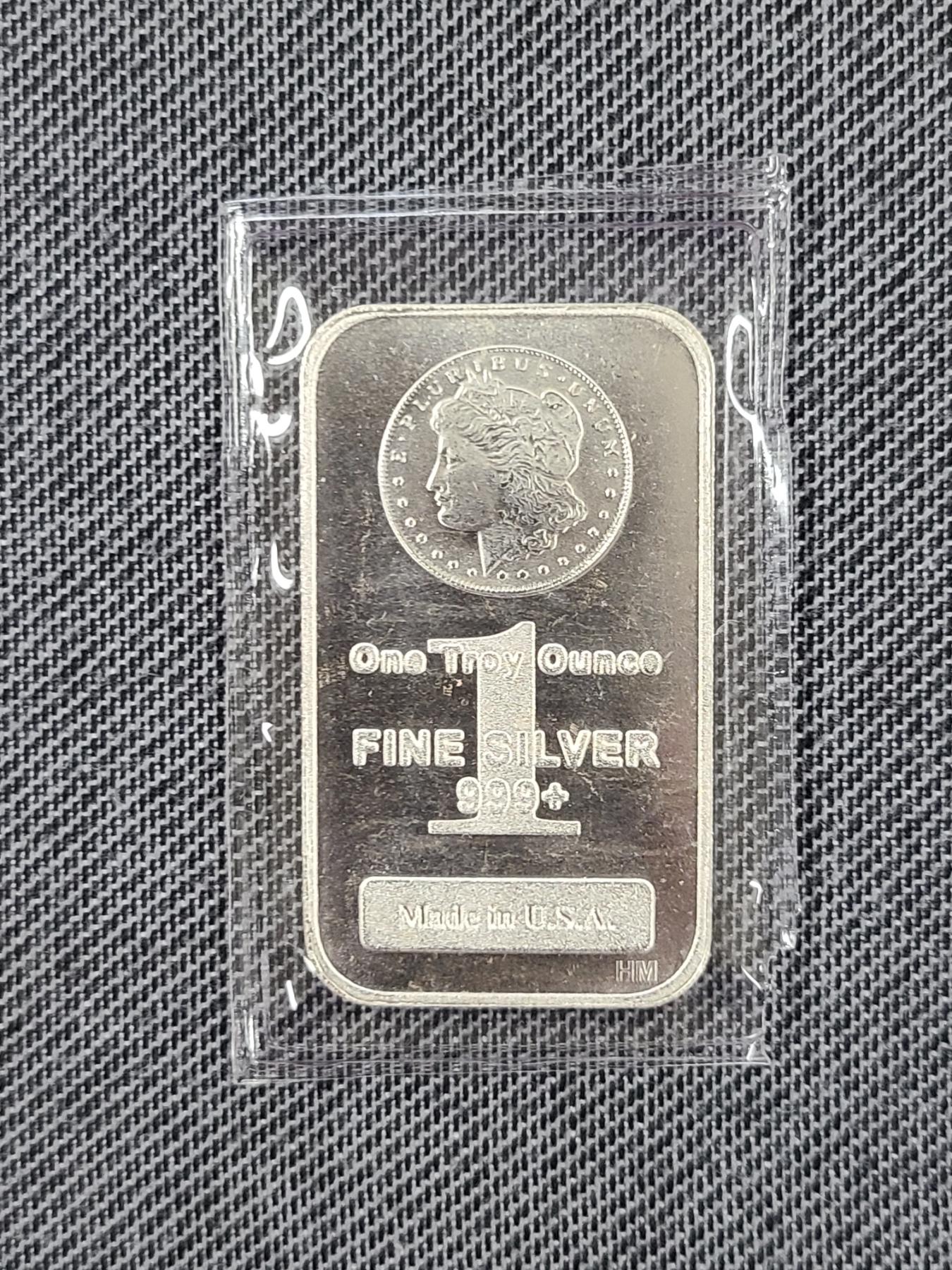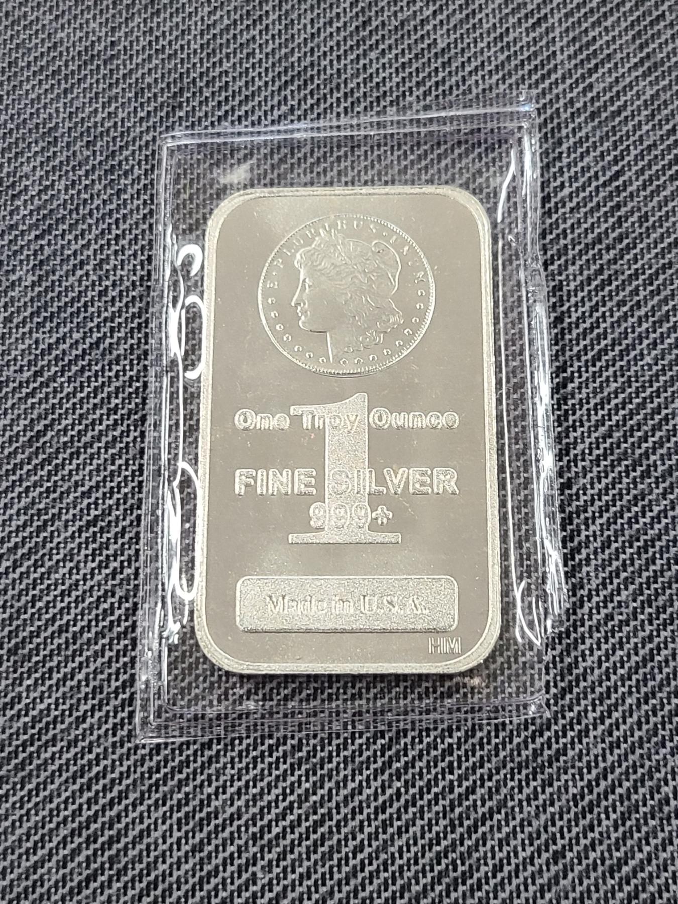 One Troy Ounce .999 Fine Silver Bar Featuring Morgan Dollar Design