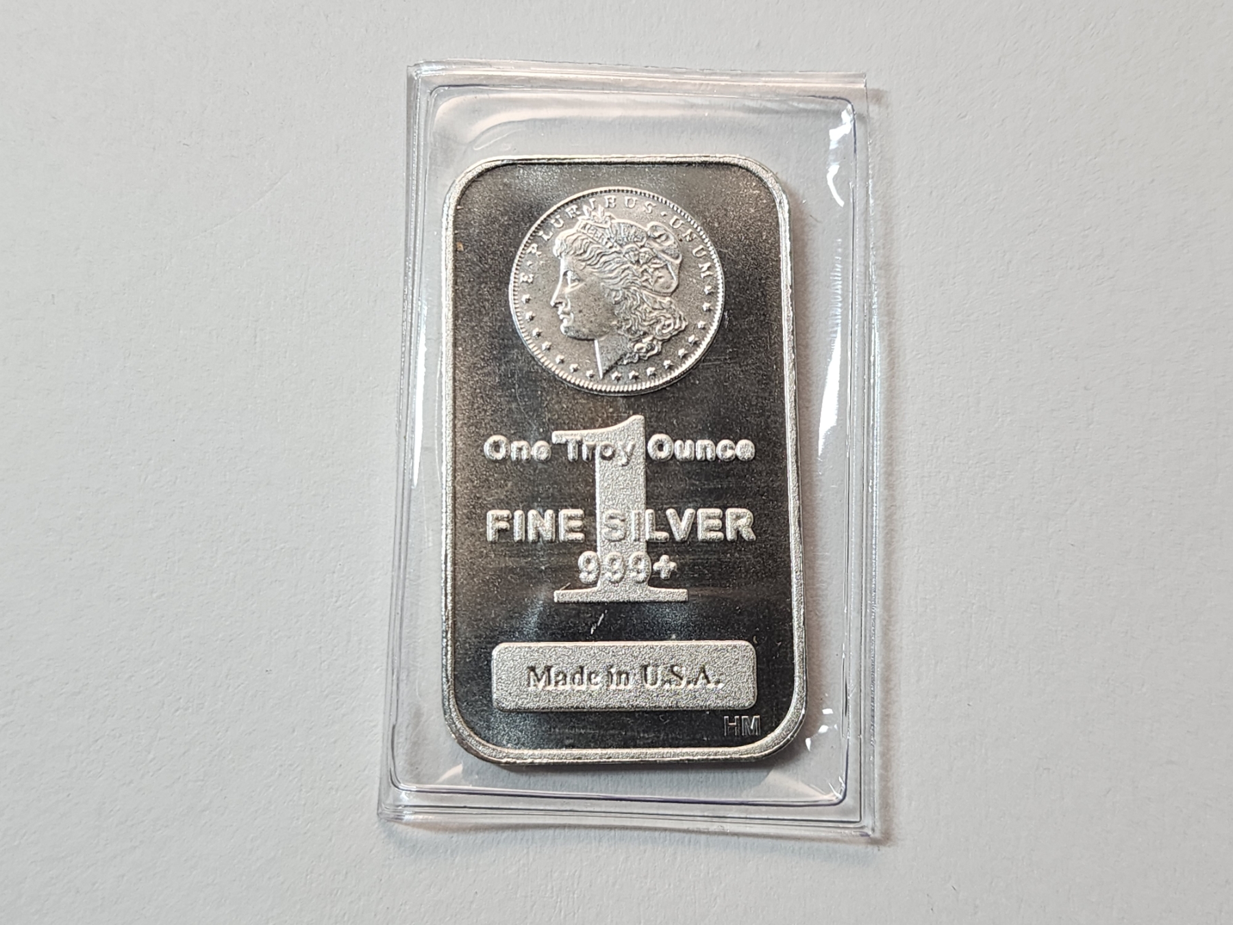 One Troy Ounce .999 Fine Silver Bar Featuring Morgan Dollar Design