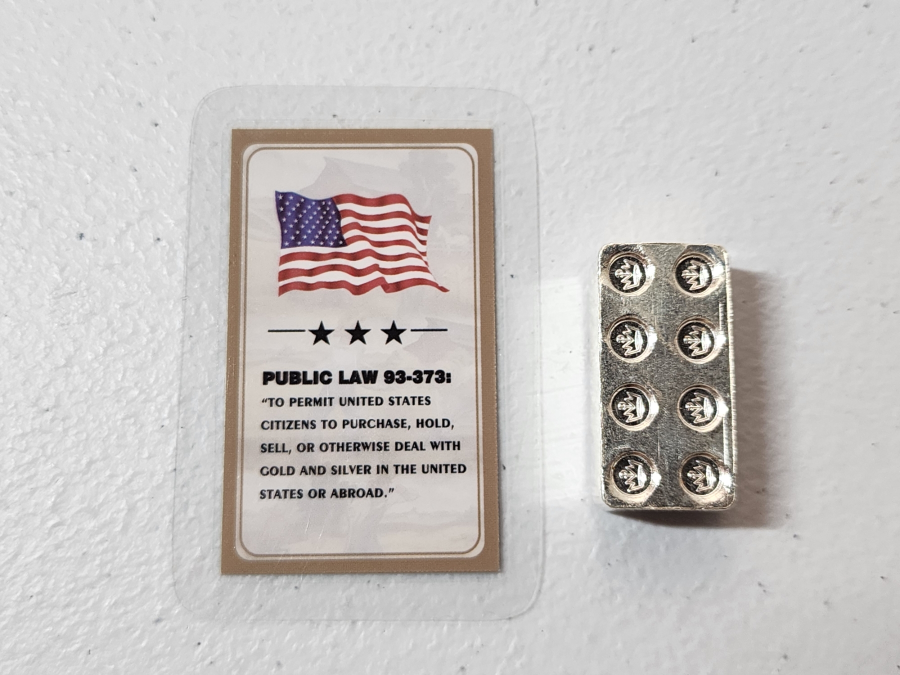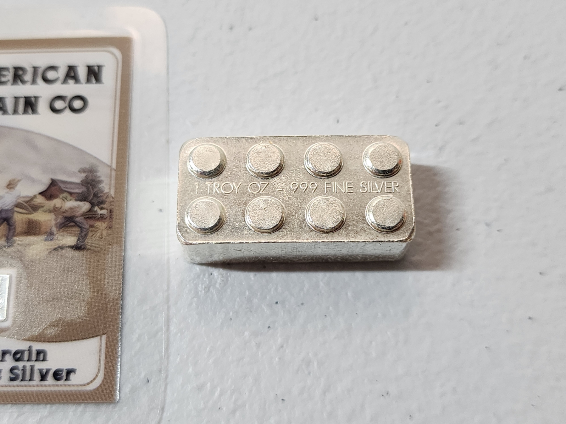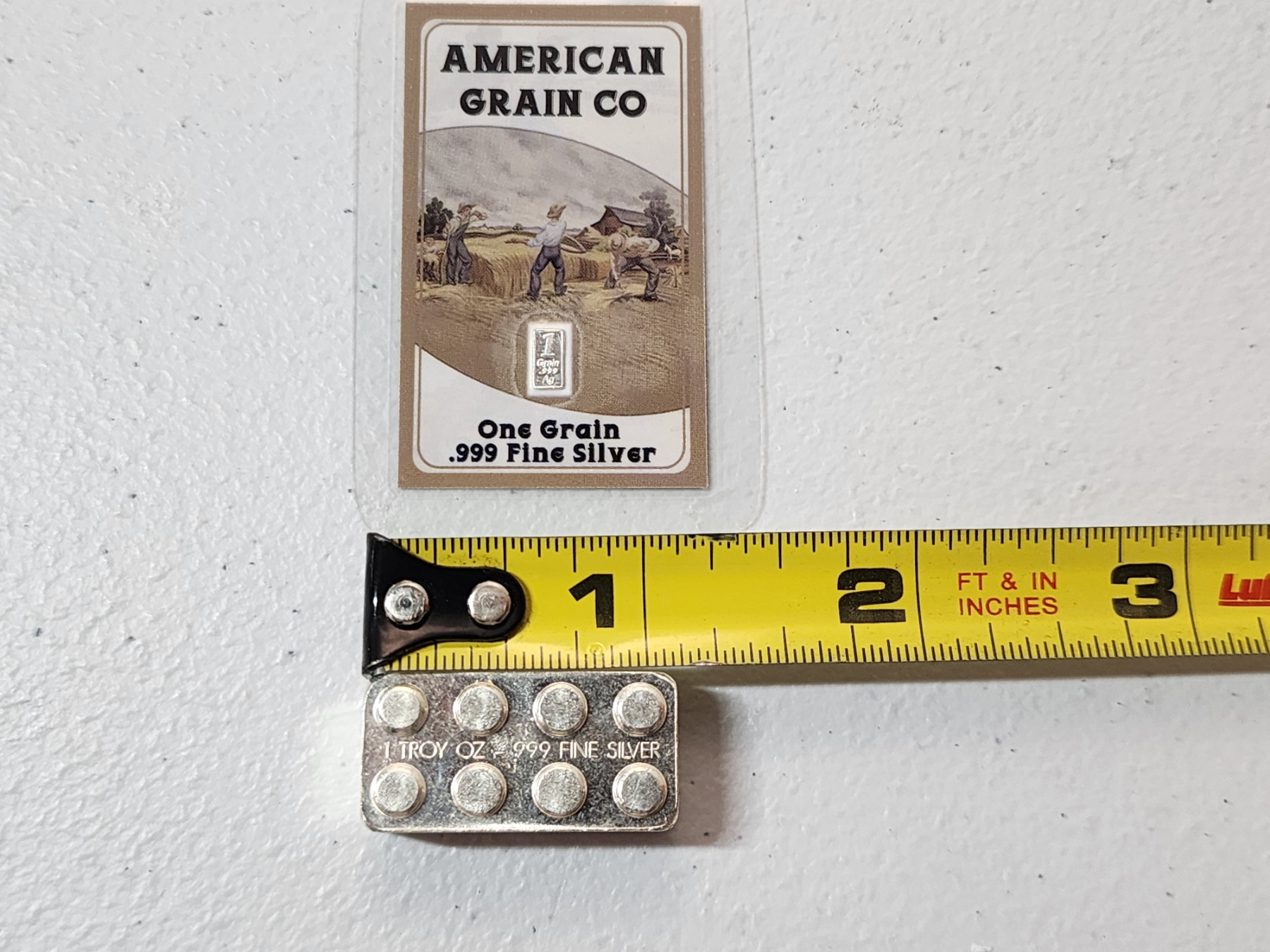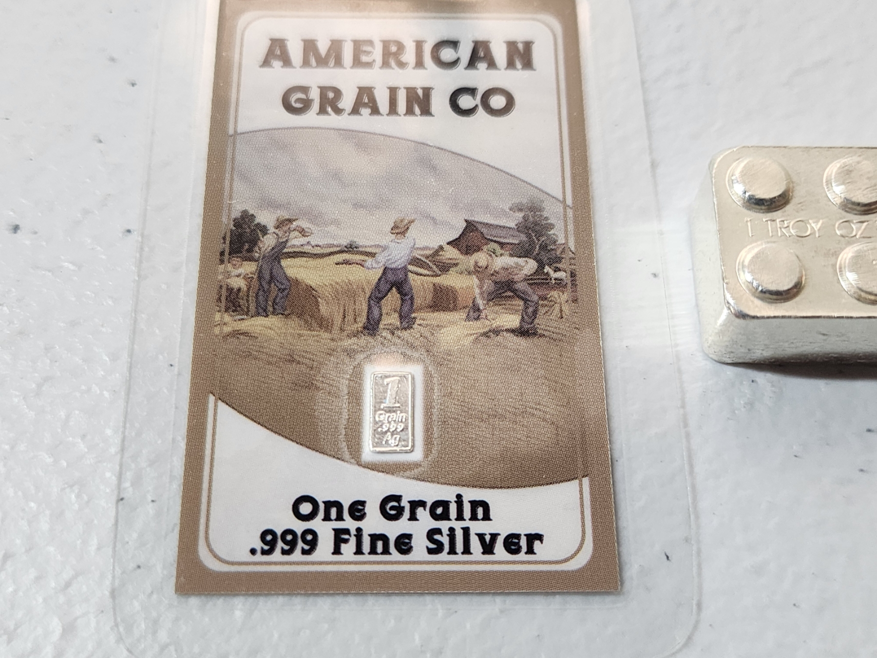 One Troy Ounce .999 Fine Silver Block Bar & American Grain Co. One Grain .999 Fine Silver