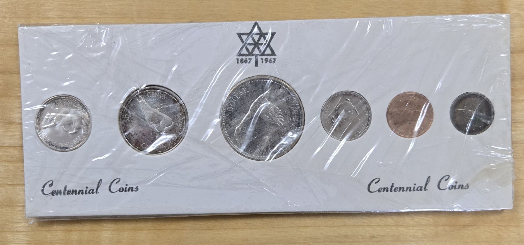 One Uncirculated Canadian 1967 “Centennial” Coin Set with Silver Dollar. Silver is 800 silver and grade AU