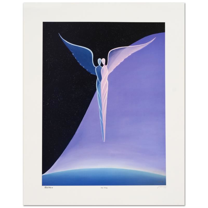 "One Wing" is a limited edition lithograph on paper by Steven Lavaggi, hand signed and numbered by the artist! Measures approx. 16" x 20" (with border); 12" x 16" (image).