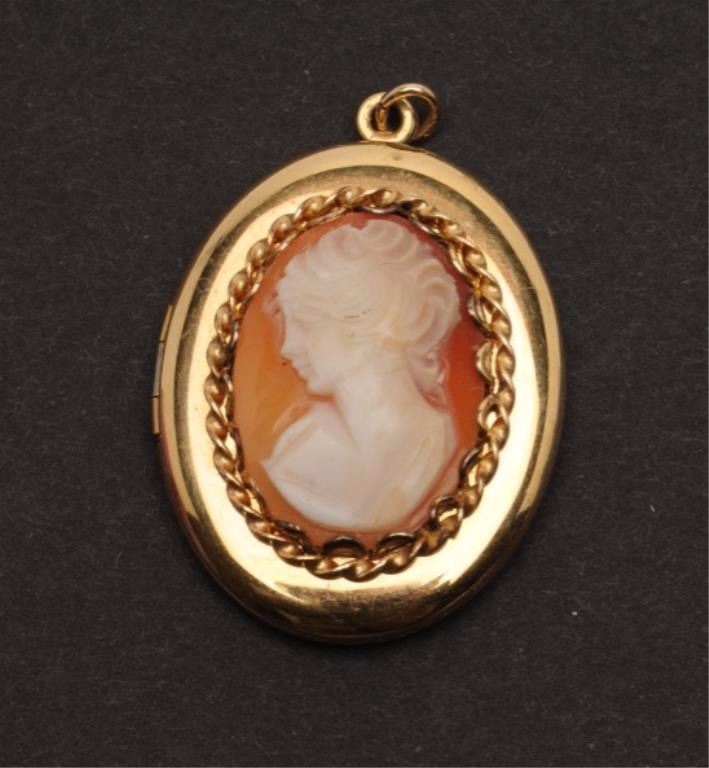 One beautiful vintage Victorian oval locket with a with a fine cameo framed in rose gold on top. Est. $400-$800.