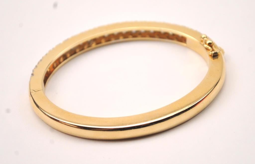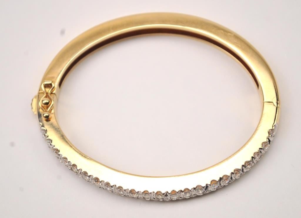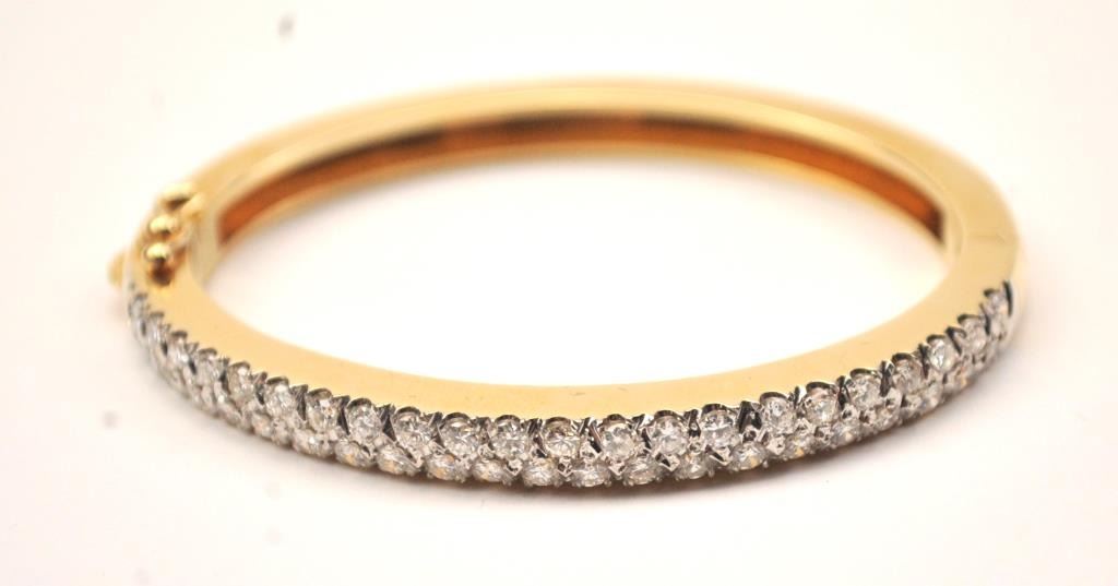 One beautifully made solid gold hinged bangle bracelet weighing 31 gms and pave set with 4ct of G-H VS1 diamonds Est:$5000-10000