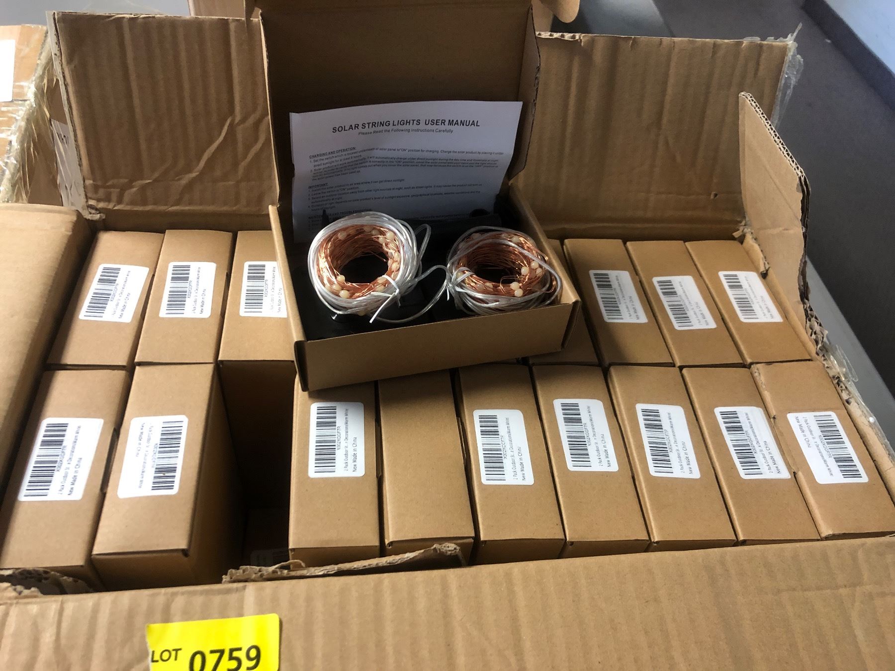 One box full of decorative LED Solar String Lights (White & Gold) - 40 packs in box