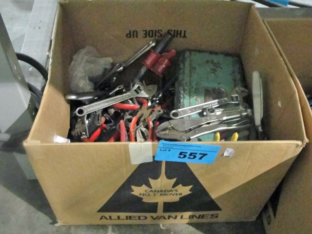 One box of assorted hand tools; screw drivers, wrenchs, etc