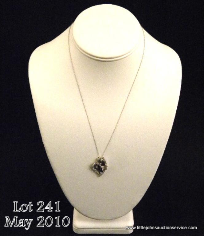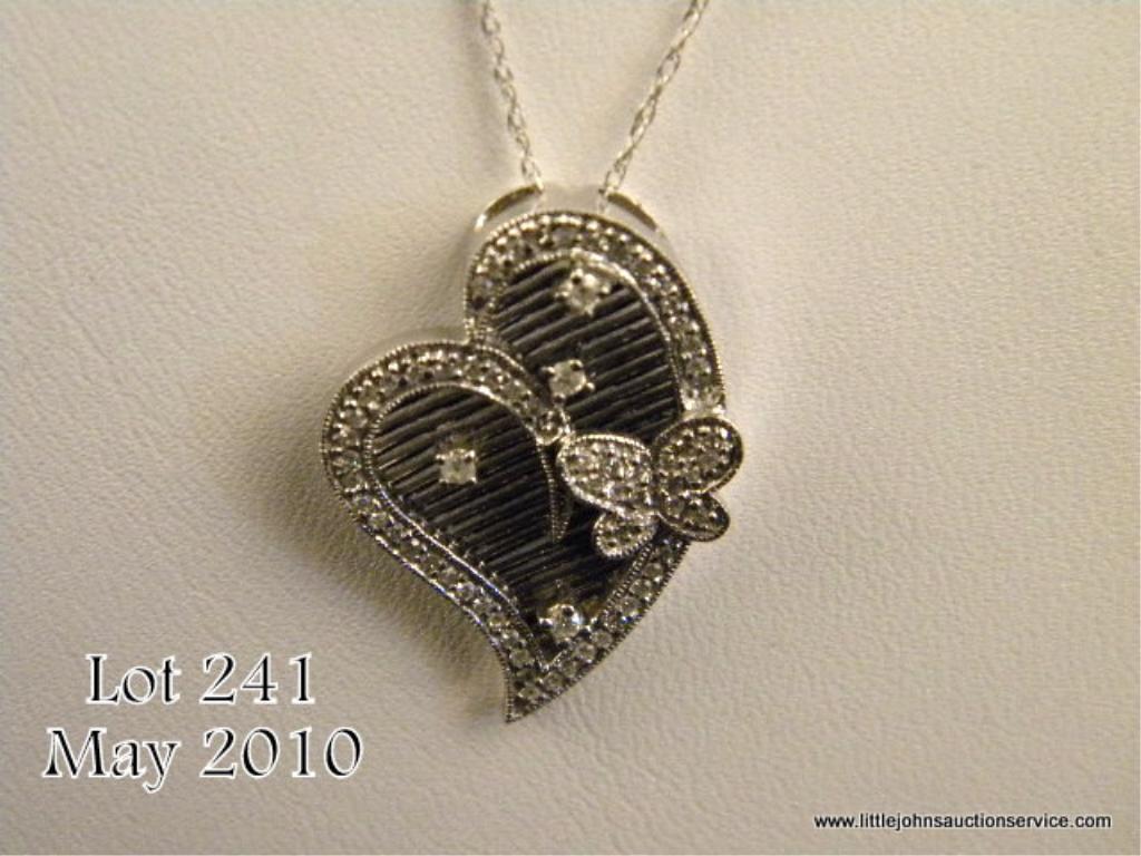 One contemporary design heart and butterfly pendant set with 0.33 ct of diamonds in 14 kt white gold with chain. Est. $1,000-$1,500.