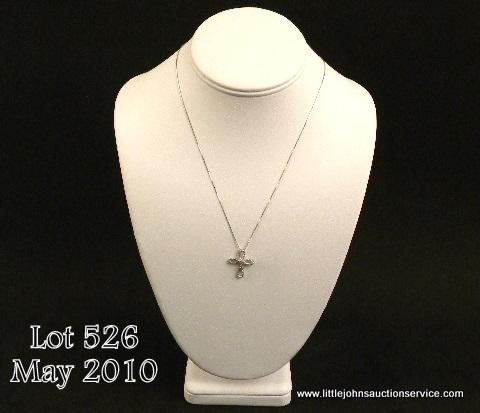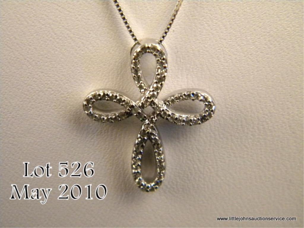 One diamond cross pendant with chain in 14kt white gold and set with 0.26 ct of diamonds. Est. $550-$850.