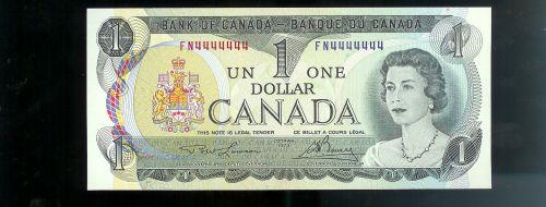 One digit "SOLID" numbered RADAR note "FN4444444" $1 1973 BC-46a Gem uncirculated