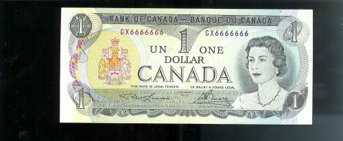 One digit "SOLID" numbered RADAR note "GX 6666666" $1 1973 BC-46a Choice uncirculated