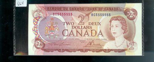 One digit "SOLID" numbered RADAR note "BC5555555" $2 1974 BC-47a Gem uncirculated.