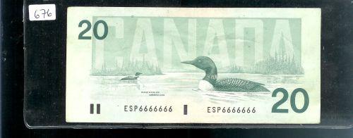 One digit "SOLID" numbered RADAR note "ESP6666666" $20 1991 BC-58b VF-EF