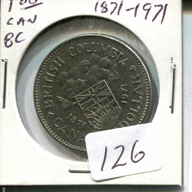 One dollar coin Canadian 1871-1971 BC