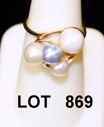 One ladies pearl ring set with 4 pearls in 14kt yellow gold (approx 5gms) Est. $350-$700.