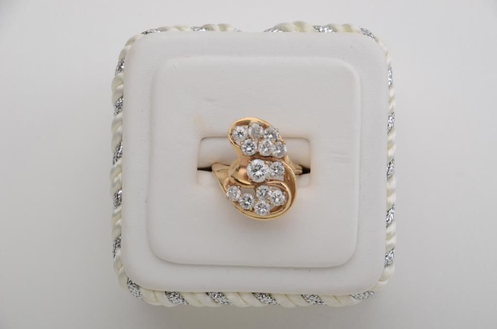 One ladies ring in 14k yellow gold diamond cluster ring set with 13 diamonds weighing approx 1.5ct. ( H VS-2) Est.:$1,500-2,000.
