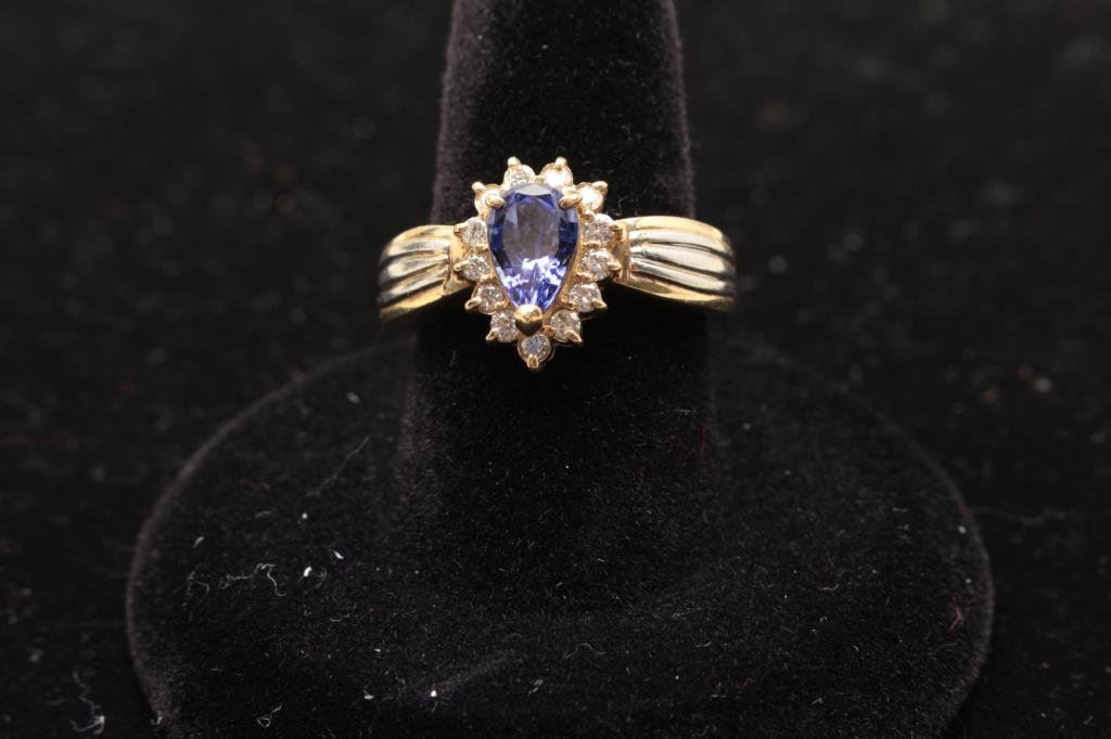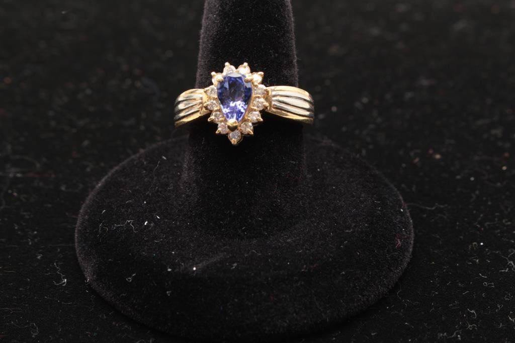 pear shaped tanzanite and 13 round diamonds. Est.: $800 -$1,600.