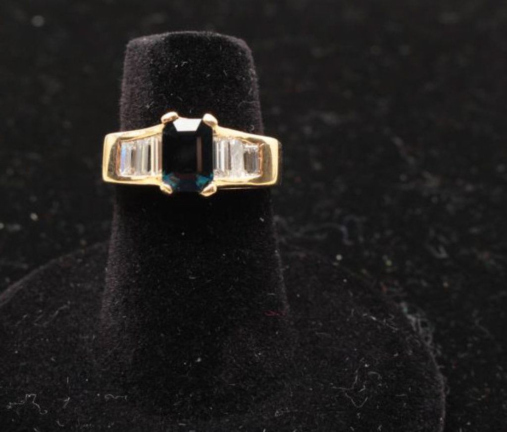 emerald cut sapphire approx.2ct and baguettes. Est.: $1,500 -$3,000.