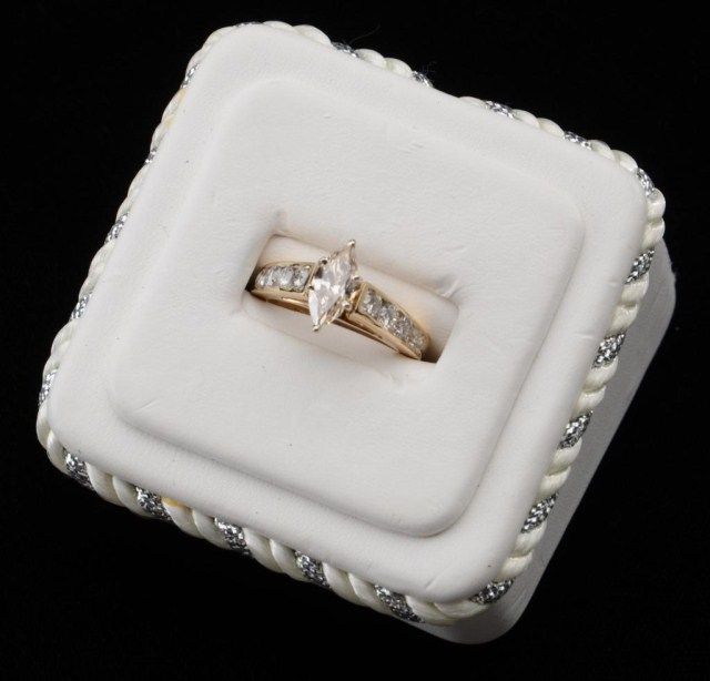 One ladies ring set with a champagne color marquee diamond weighing 0.91ct clarity VS1, with 8 side diamonds weighing 0.64 ct Est.:$2,500-$3,000.