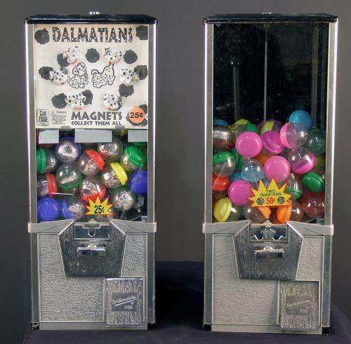 One lot of 2 vending machines dispenses Dalmation dogs in capsules - in working order