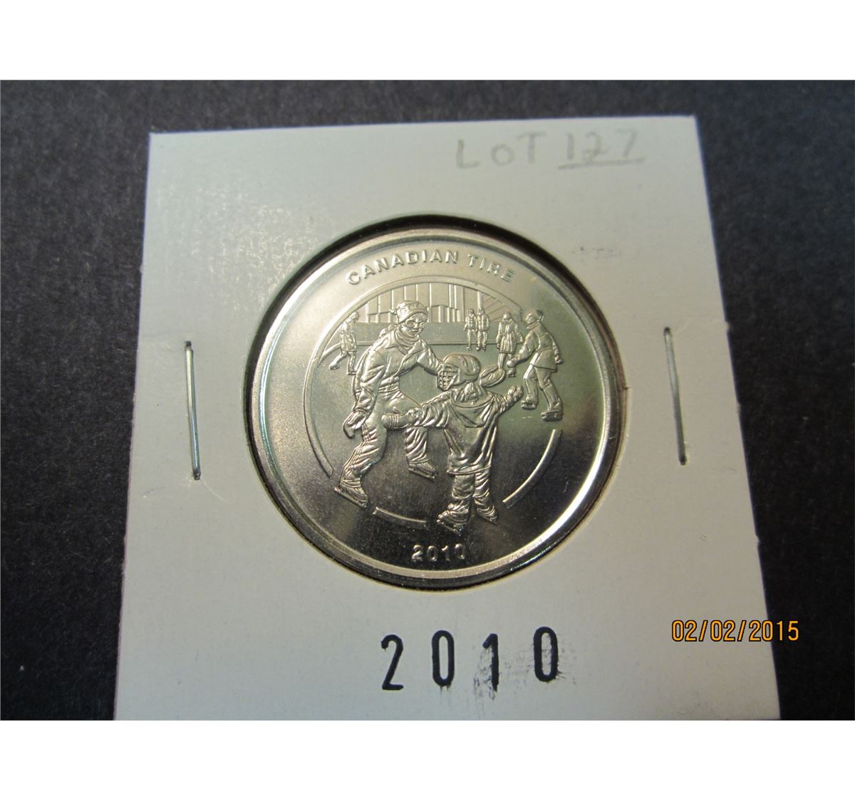 One odd, unique, Nickel Plated Canadian Tire Limited Edition $1.00 coin - skating 2010. Excellent condition.