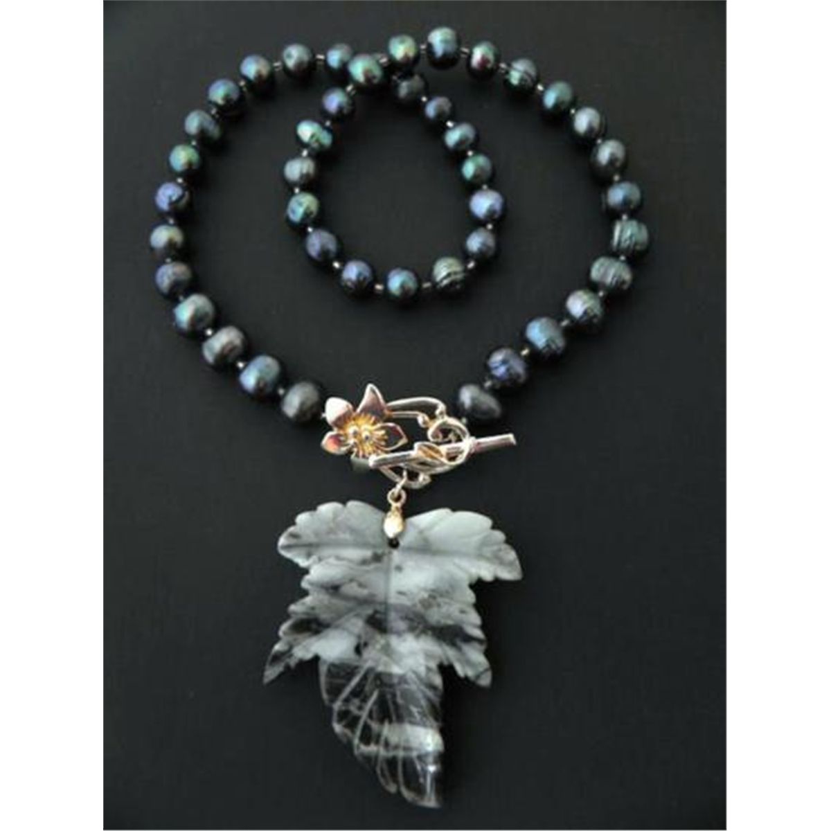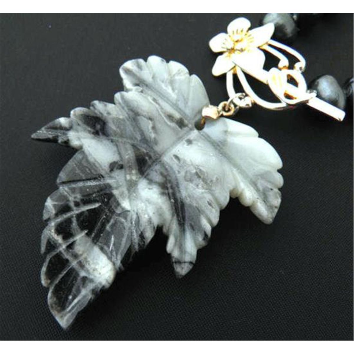 One of Kind Hand Carved-Natural Amazonite gemstone Leaf pendant necklace, Necklace measures approximately 17.5in.