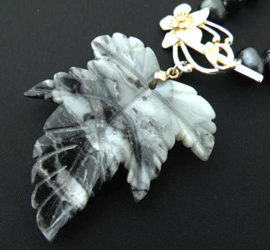 One of Kind Hand Carved-Natural Amazonite gemstone Leaf pendant necklace, Necklace measures approximately 17.5in.
