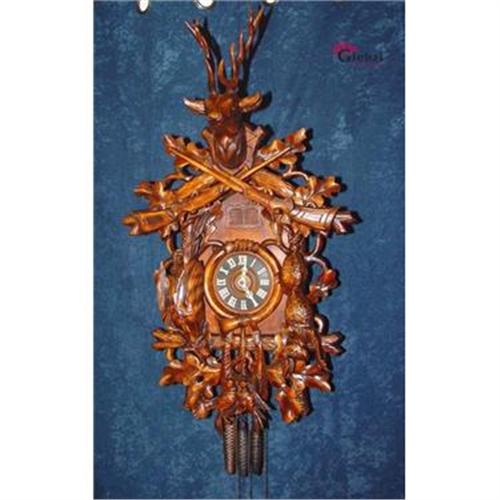 ABSOLUTELY AMAZING!!! WHAT A GORGEOUS CUCKOO CLOCK!!This incredible antique cuckoo clock is the perfect impressive clock for your well decorated home or office!It is getting extremely hard to find these high end Cuckoo's clocks!This clock is made of the finest birch wood and has a gorgeous patina.We were lucky to acquire it from a high end private estate in the South of Germany near Munich!This huge black forest cuckoo clock that dates from the second quarter of the 20th C. (c. 1930) is one of the biggest cuckoo clock we have ever seen! The dimensions are: Height: 37 Inches, Width: 21 Inches and Depth: 15 Inches.The moment you hear that distinctive call as the cuckoo pops out of the little door in the carved wood, you will be transported back to a time of great clock making.Every full and half hour the clock plays a melody while a musician coming out.The clock has a 30 hours movement and is driving by three pine cone shaped metal weights that hang from brass chains. The movement is operated by a carved wooden pendulum that swings back and forth as the clock runs.There is also a chime that will sound as the cuckoo bird coo coos. This clock is mint condition . It runs perfect , keeps time and there are no defects anywhere. The clock is carved with two rifles, a rabbit with a pheasant(13 Inches tall),many beautiful leaves, a hunting horn,a hunting bag with two birds, and on the top a deer head with antlers.Regarding shipping we will pack the clock in a wooden crate so you will receive ...