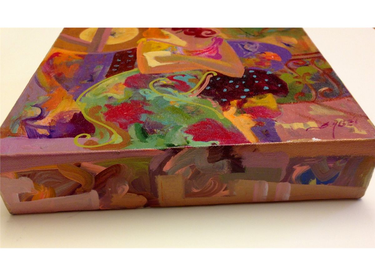 Original painting on canvas by Sabzi measures 12x12 inches and is gallery wrapped with original painting on the sides as well.