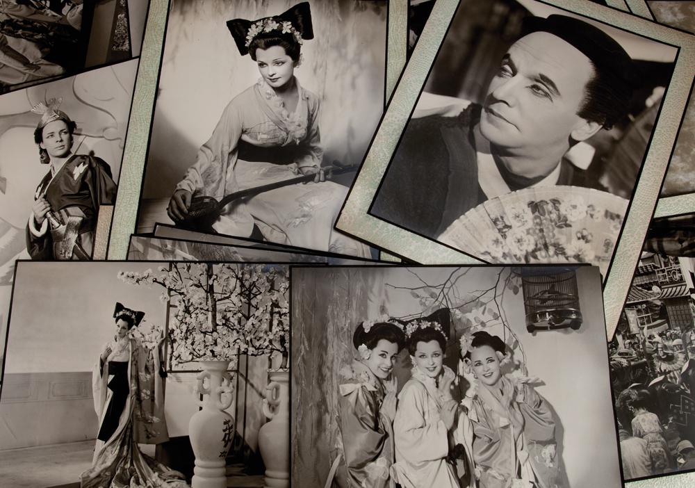 (Gilbert and Sullivan Films, 1939) (39) silver bromide 12 x 15” semi-gloss prints on individual backing-paper mounts, comprising an elaborate, comprehensive, and almost certainly unique archive for this fondly-remembered British filming of Gilbert and Sullivan’s classic operetta. From its breathtaking quality it is no surprise that this collection, housed in a flap-folding string-tie cover, was created for just one person, the director Victor Schertzinger. Four of the images are signed in fountain pen by the following cast members: Elizabeth Paynter, John Barclay, Martyn Green, Gregory Stroud, Sydney Granville, and Joy Fenten; additionally, all thirteen images which have retained their surrounding decorative mounts are signed by photographer Frederick William Daniels on the mount. A number of Daniels’ original prints are held in the permanent collection of the National Portrait Gallery of London. The quality of the photography and the ensuing printwork is unsurpassed, forming one of the most impressive tributes to any film we have ever seen. Photographs are in excellent condition throughout; mounts which remain are generally Fine.