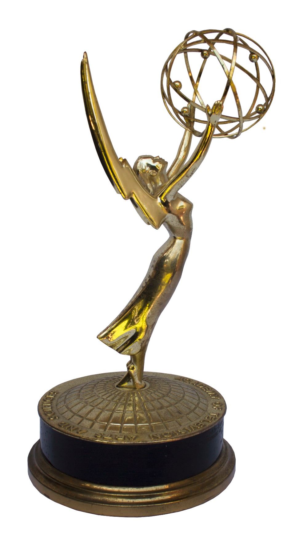 1989 Primetime Emmy award for ''The Tracey Ullman Show'', including ''The Simpsons'' short ''Maggie in Peril''. Emmy was won in the category of ''Outstanding Art Direction for a Variety or Music Program''. Of course, before ''The Simpsons'' secured its own primetime slot in 1989, it debuted as a series of shorts on ''The Tracey Ullman Show'' from 1987-1989. The iconic winged woman holding an atom stands on the convex, grid-lined surface of a round metal base, plated in 18k gold. Flat perimeter of base reads: ''ACADEMY OF TELEVISION ARTS AND SCIENCES''. Plaque is engraved with 7 lines naming the award, its category and recipient: ''1988-1989 PRIMETIME EMMY AWARDS / OUTSTANDING ART DIRECTION FOR A VARIETY OR MUSIC PROGRAM / THE TRACEY ULLMAN SHOW / ALL ABOUT TAMMY LEE / MAGGIE IN PERIL - PART 2 / FOX / PORTIA IVERSEN''. Measures 15.5'' in total height with 7.5'' diameter base and weighs 5 lbs., 10 oz. Some tarnishing to metal and wear to black band, overall in very good condition.
