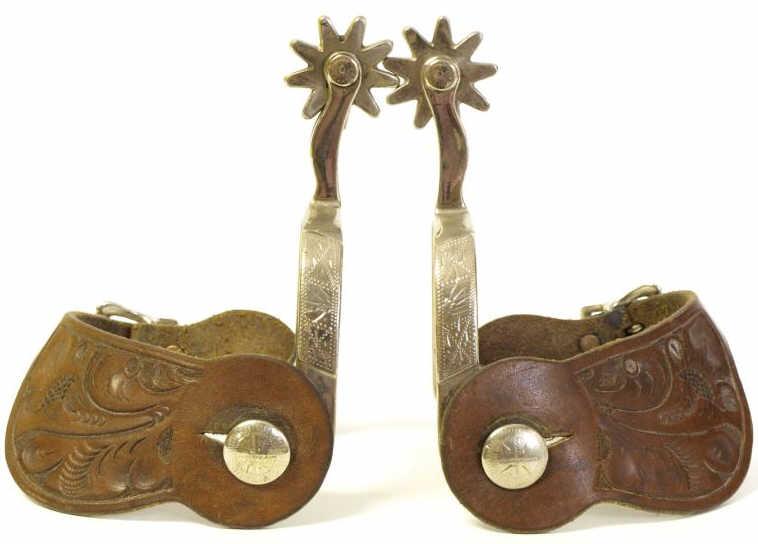 with unmarked leather spur straps. Spurs showing very good condition.