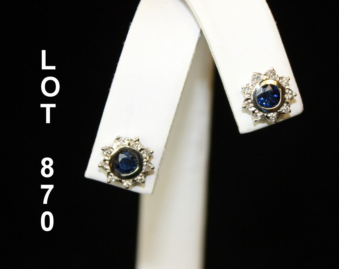 One pair of hand fabricated sapphire and diamond earrings set withtwo round sapphirs weighing approx. 1ct and 18 single cut diamonds weighing a total 0.30ct. Est.: $400-$500.