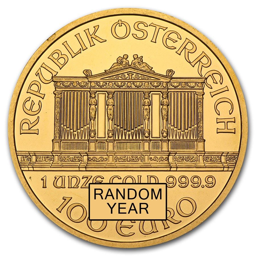 One pc. Austria 1 oz .9999 Fine Gold Philharmonic BU Random Year