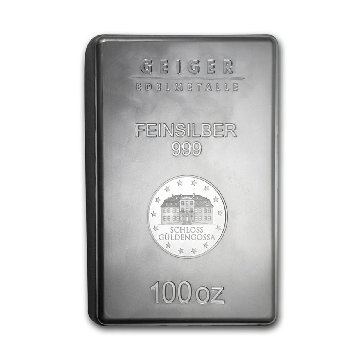 SKU: 83341 ---- One piece 100 oz 0.999 Fine Silver Bar Geiger Security Line Series