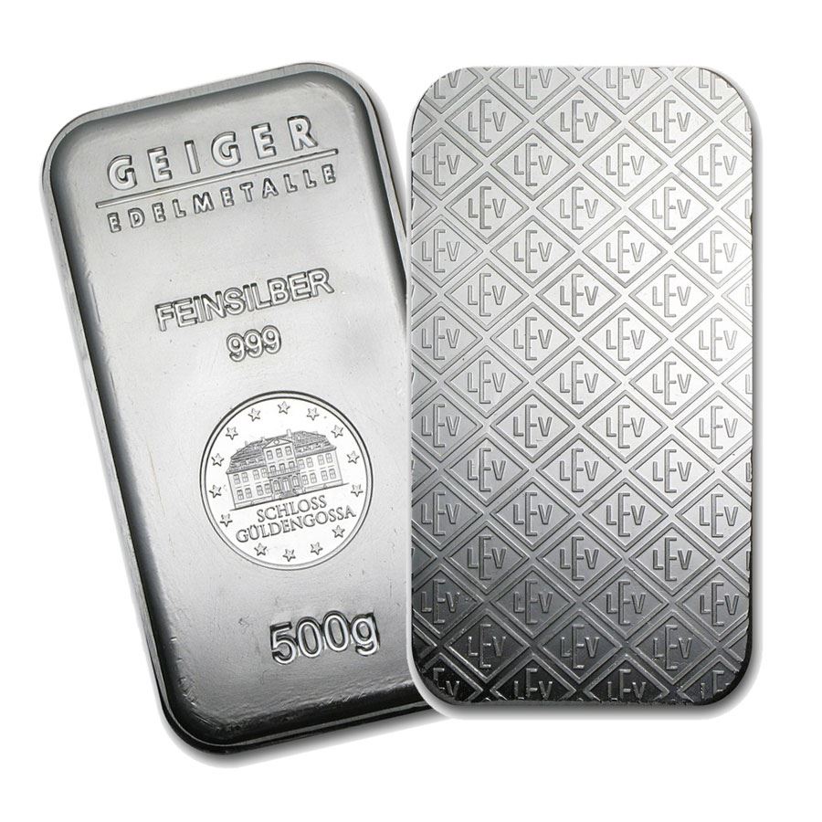 SKU: 74693 ---- One piece 500 gram 0.999 Fine Silver Bar Geiger Security Line Series - REF#74693