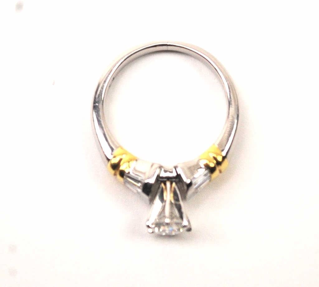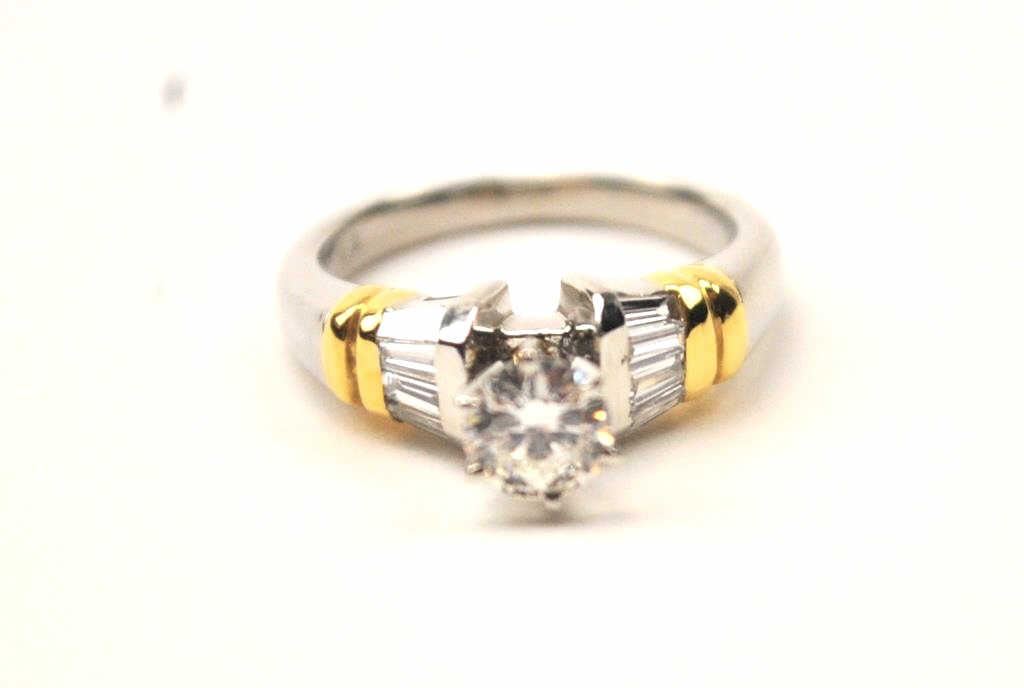 One platinum ring with 18k yellow gold accent set with a 0.60ct center and 8 baguettes approx 0.50ct(TW 1.10ct) Est:$1500-3000
