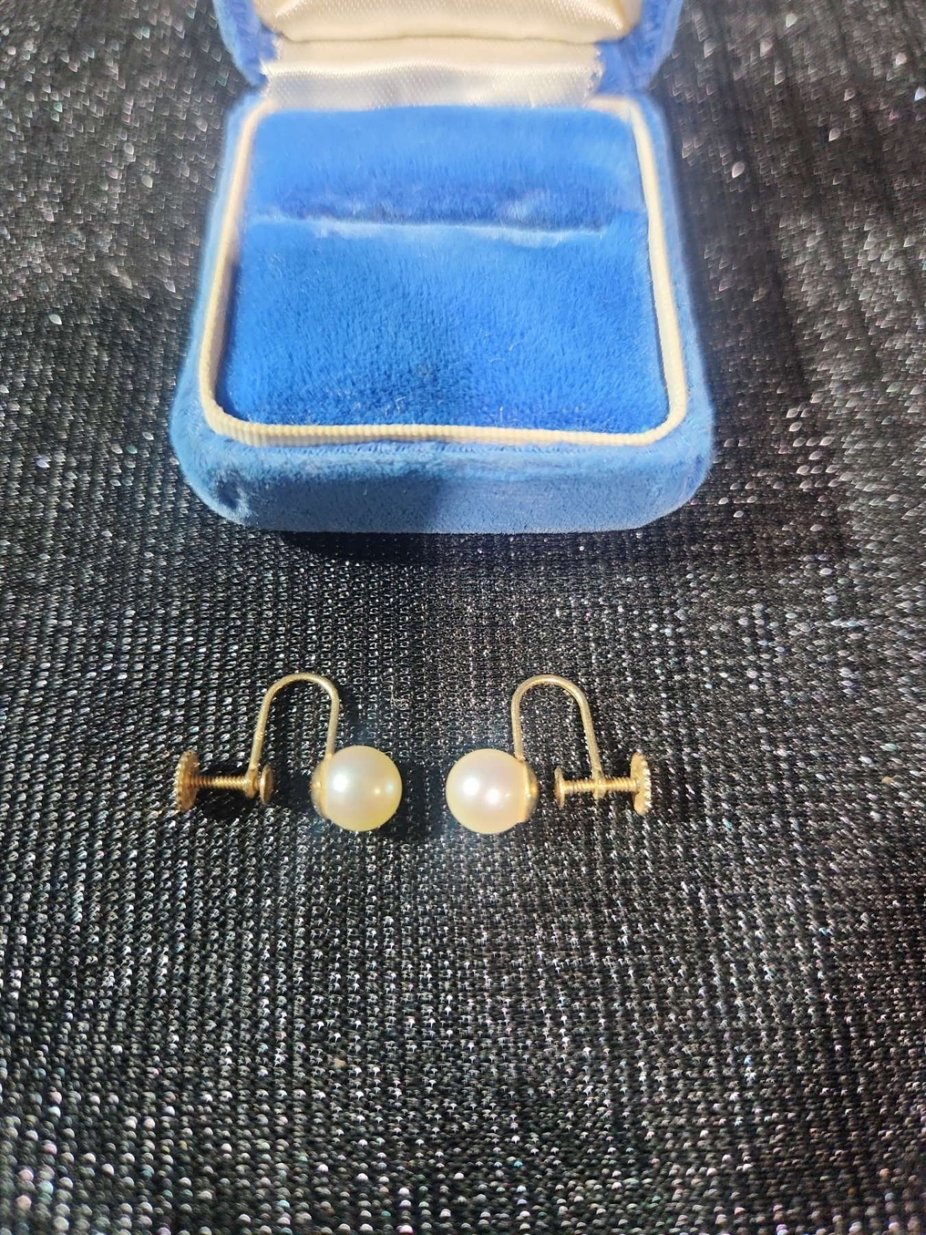Little blue box complete with one set of screw back pearl earrings